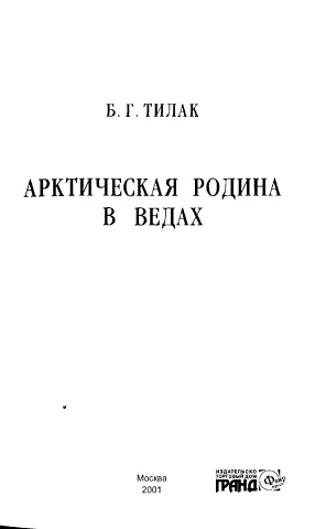 Б.Г.ТИЛАК АРКТИЧЕСКАЯ РОДИНА В ВЕДАХ ИЗДАТЕЛЬСКО Москва Ж 2001