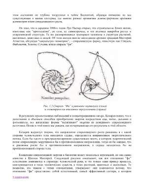 Рис. 1.2 Спираль “Фи” в раковине наутилуса (слева)