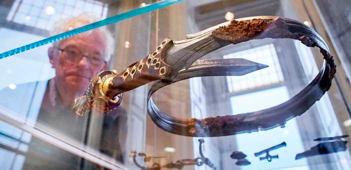Свёрнутый в кольцо меч с позолотой из княжеского кургана Осса. Музей Лейден.